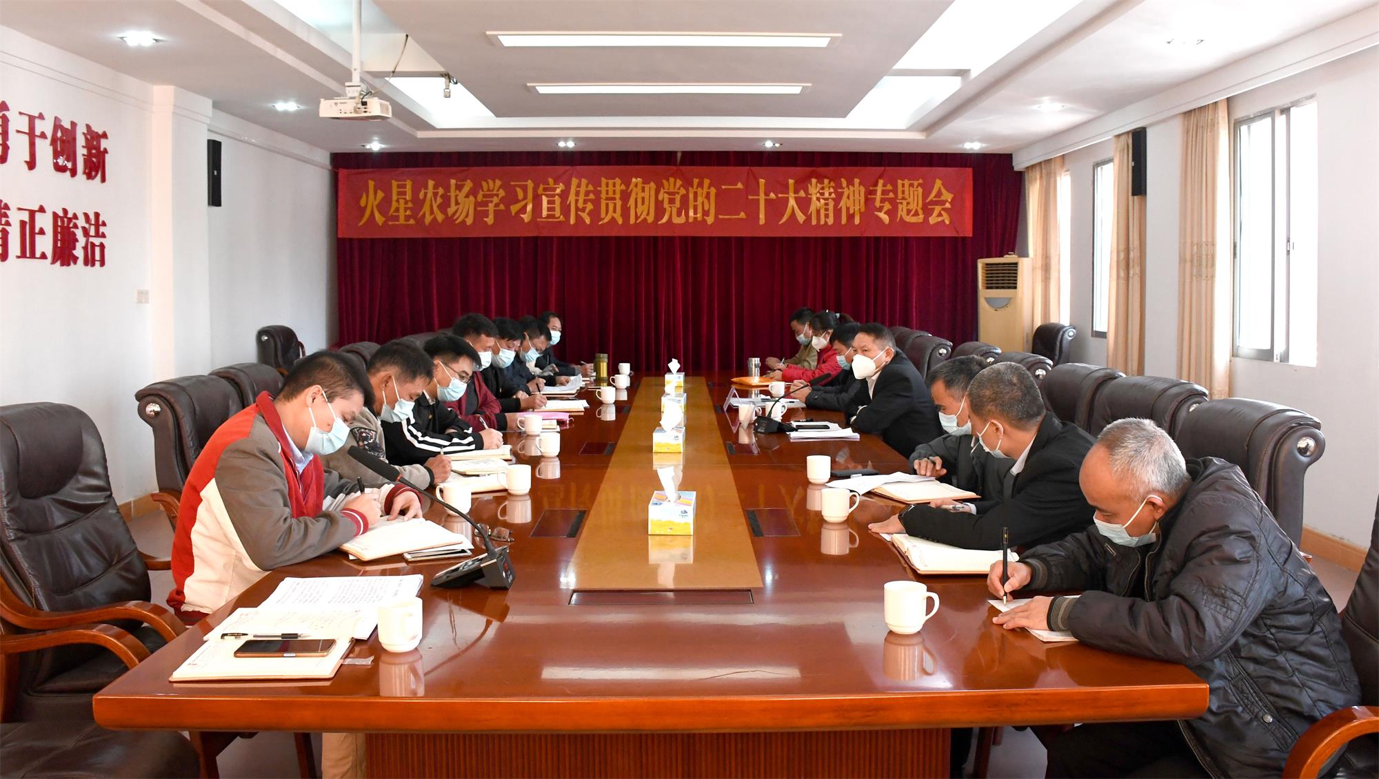 12月22日,火星農(nóng)場有限公司開展黨委理論中心組第十專題學(xué)習(xí)會(huì),公司中心組成員參加學(xué)習(xí)?;鹦枪军h委副書記、董事、總經(jīng)理蘇錫茂主持會(huì)議講話。茂名農(nóng)墾集團(tuán)有限公司黨組書記、董事長潘飛到會(huì)列席旁聽。