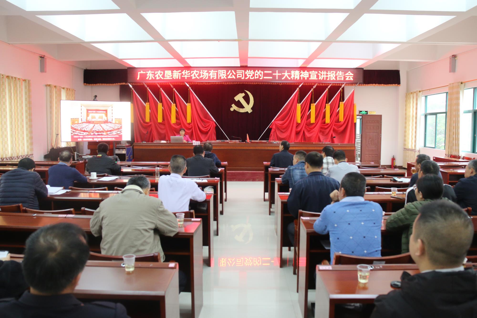 3月28日,新華農場有限公司舉行學習宣傳貫徹黨的二十大精神宣講報告會,邀請化州市委宣講團成員、化州市委黨校副校長楊李梅宣講,公司本部全體黨員干部、直屬單位負責人參加會議。