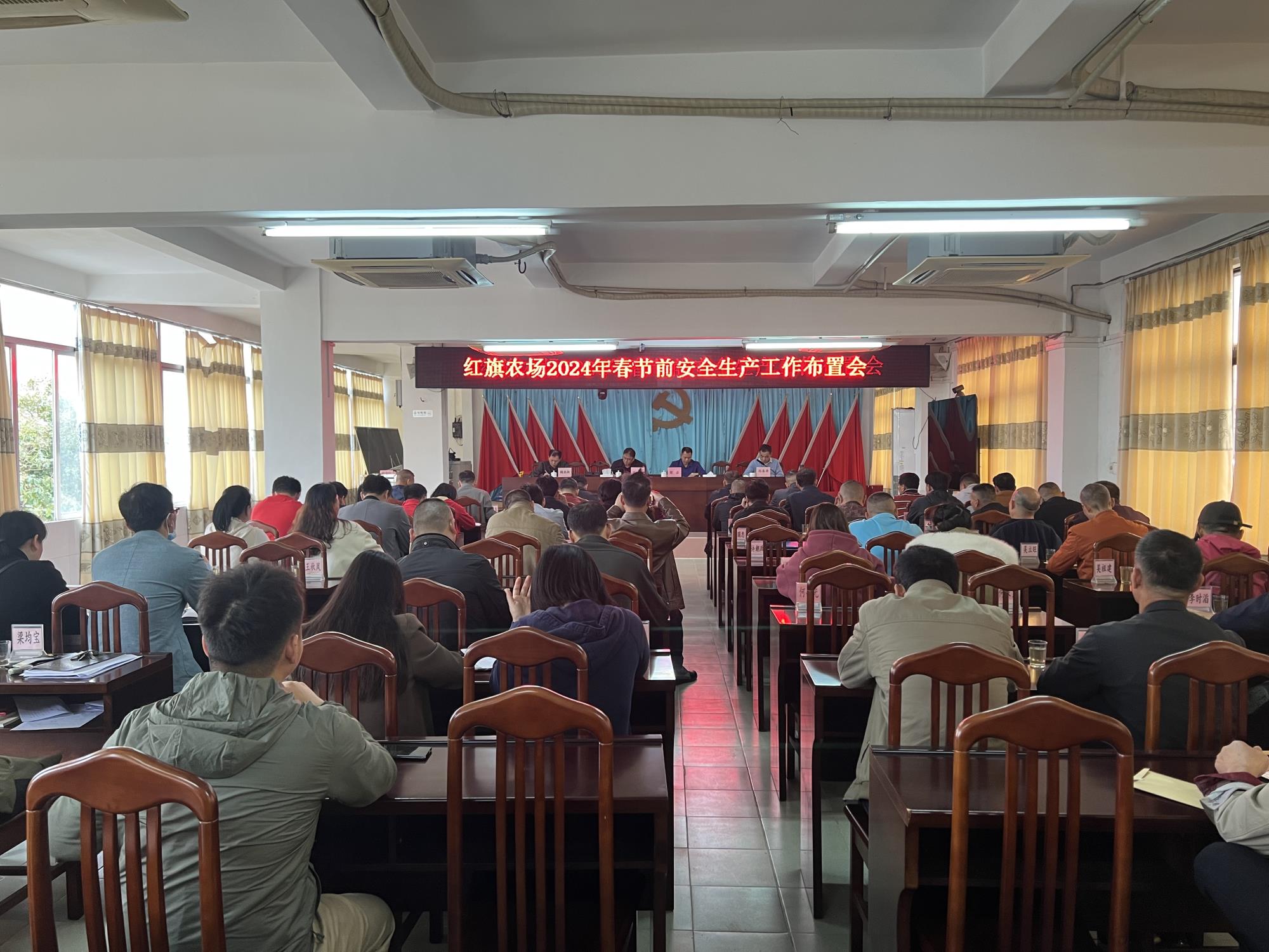 為保障春節(jié)期間安全穩(wěn)定,2月5日,紅旗農(nóng)場召開2024年春節(jié)前安全生產(chǎn)工作布置會(huì)。