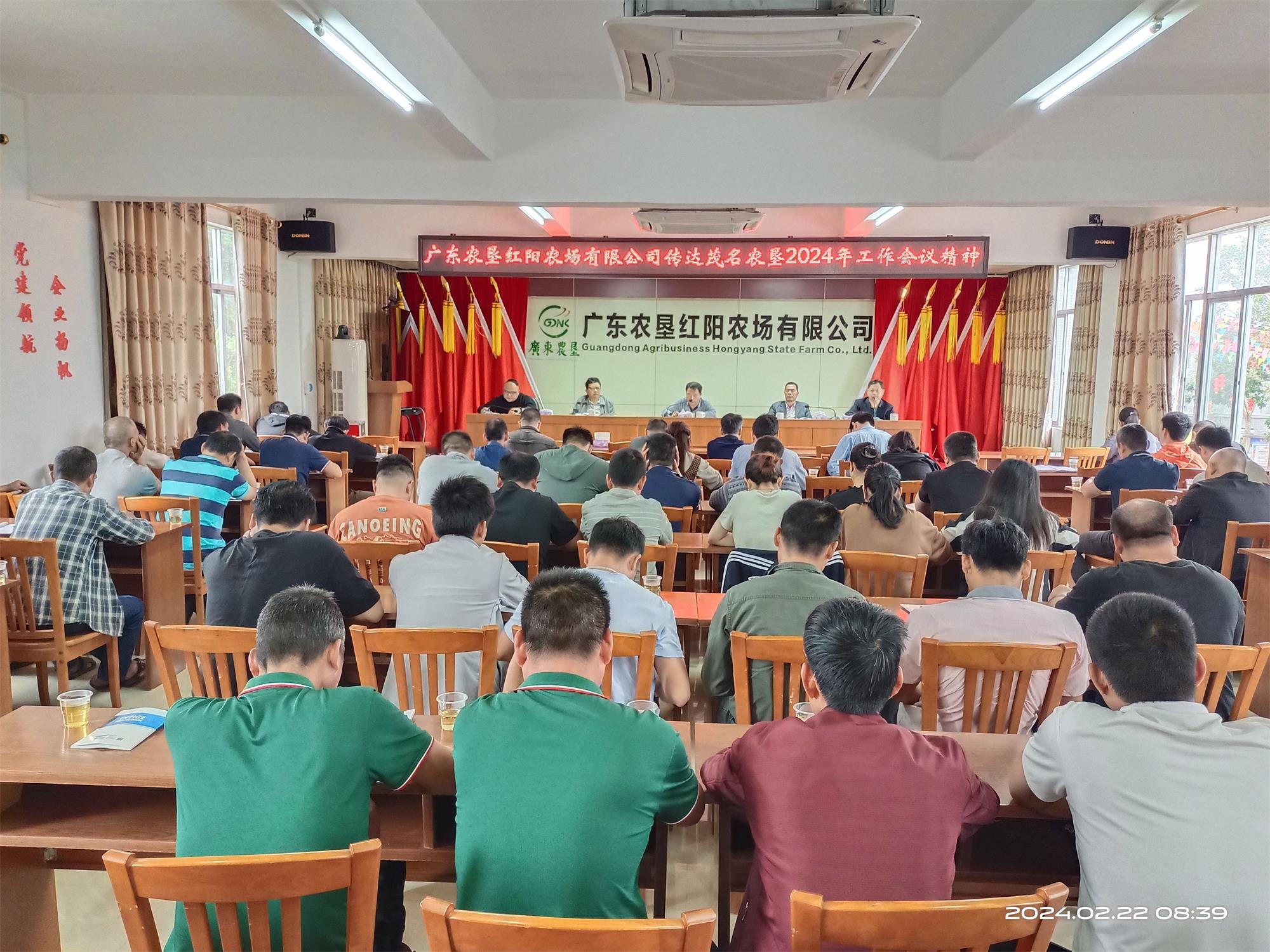 2月22日上午,紅陽農(nóng)場(chǎng)有限公司召開會(huì)議,傳達(dá)學(xué)習(xí)茂名農(nóng)墾2024年工作會(huì)議精神,研究部署貫徹落實(shí)意見。公司領(lǐng)導(dǎo)班子成員、機(jī)關(guān)干部、直屬單位負(fù)責(zé)人、作業(yè)區(qū)全體管理人員共80余人參加會(huì)議。黨委書記、董事長(zhǎng)劉杰武解讀茂名農(nóng)墾2024年工作會(huì)議報(bào)告,黨委委員、紀(jì)委書記、工會(huì)主席劉文華主持會(huì)議。