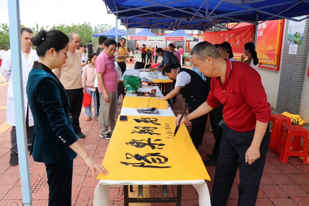 活動現(xiàn)場,各項沉浸互動熱鬧非凡,春日經(jīng)濟(jì)活力涌動。“花、開、好、運”尋寶游戲區(qū)里新奇神秘,通過將化橘紅典故植入定向越野環(huán)節(jié),游客在爛漫花海中探尋文化密碼,集齊“紅峰橘寶”兌換憑證的趣味機(jī)制,讓文化傳承變得可觸可感;書法繪畫區(qū)墨香氤氳,書畫家們激情揮毫潑墨,筆鋒游走間,一幅幅精美的字畫躍然紙上,游客憑消費憑證即可獲贈名家作品,實現(xiàn)藝術(shù)收藏與農(nóng)產(chǎn)品消費的跨界融合;“太空漫步”“螃蟹賽跑”等創(chuàng)意游戲引爆參與熱潮,“蛇行好運搶頭彩”等團(tuán)隊挑戰(zhàn)項目增進(jìn)親子默契,廣墾鳳鮮無抗雞蛋與化橘紅產(chǎn)品兌換區(qū)前人流如潮,綠色健康理念與道地藥材價值形成消費雙驅(qū)動。