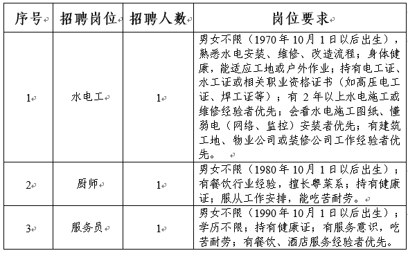 廣東農(nóng)墾曙光農(nóng)場(chǎng)有限公司,創(chuàng)建于1952年,總部位于電白區(qū)北部中心區(qū)沙瑯鎮(zhèn),現(xiàn)有國(guó)有土地11.38萬(wàn)畝,下轄兩個(gè)直屬單位、6個(gè)生產(chǎn)作業(yè)區(qū),場(chǎng)部環(huán)境優(yōu)美,交通便利?,F(xiàn)面向社會(huì)公開招聘水電工1人、廚師1人、服務(wù)員1人,現(xiàn)將有關(guān)事項(xiàng)公告如下:
