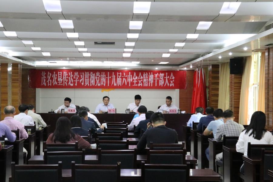 茂名農(nóng)墾召開傳達學習貫徹黨的十九屆六中全會精神干部大會 11月19日,茂名農(nóng)墾召開傳達學習貫徹黨的十九屆六中全會精神干部大會,及時傳達落實上級有關工作要求,研究部署墾區(qū)貫徹落實工作。集團有限公司(局)黨組書記、董事長(局長)潘飛作貫徹落實全會精神工作部署,黨組副書記、總經(jīng)理(副局長)陳永光傳達學習黨的十九屆六中全會精神以及省委、省農(nóng)墾集團公司黨委、茂名市委有關會議精神,黨組副書記、紀檢組組長何春濤主持會議。 會議指出,黨的十九屆六中全會是在我們黨成立一百年的重要歷史時刻,在黨和人民勝利實現(xiàn)第一個百年奮斗目標、全面建成小康社會,正在向著全面建成社會主義現(xiàn)代化強國的第二個百年奮斗目標邁進的重要歷史關頭召開的一次具有重大歷史意義的會議。