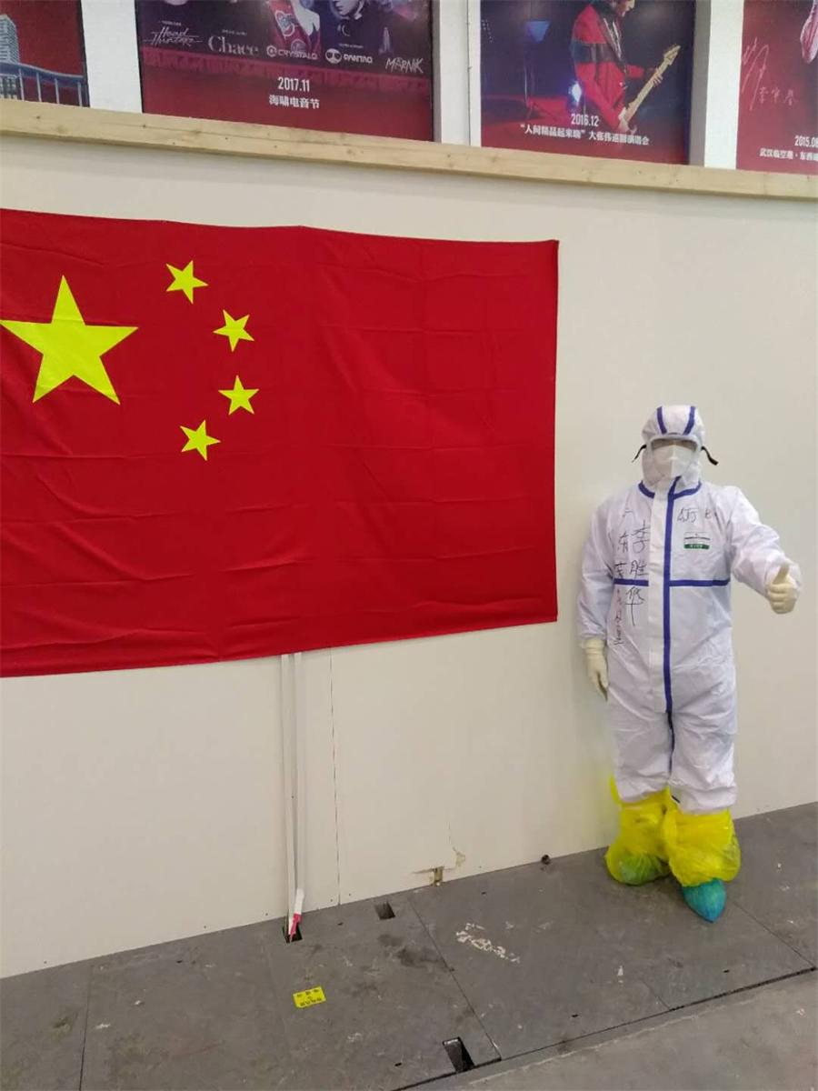 接送我們的大巴車行駛在武漢寂靜的街道上,路上空無一人,只有十字路口的紅綠燈還在有規(guī)律地交替閃爍著。不知是因?yàn)槲錆h嚴(yán)重的疫情讓隊(duì)友們感到壓抑,還是因?yàn)槁猛镜膭诶郏腥硕疾徽f話,大巴車?yán)锔裢獍察o。突然,有人喊了一聲:“快看快看。”大家順著那名隊(duì)友指的方向看去,遠(yuǎn)處的樓群,用外墻裝飾燈組成了幾個(gè)火紅火紅的大字“中國加油,武漢必勝”。寧靜被打破了,隊(duì)友們都不約而同地喊了起來“中國加油,武漢必勝。”在疫情特殊時(shí)期,物流人員只能把醫(yī)療隊(duì)的所有物資送到駐地門口,不能進(jìn)入駐地。帶著學(xué)校、醫(yī)院、領(lǐng)導(dǎo)和家人滿滿的關(guān)愛,等我們把所有的生活物資、防護(hù)物資、醫(yī)療物資都搬進(jìn)房間,整理、消毒完畢之后已經(jīng)是凌晨3點(diǎn)多了。