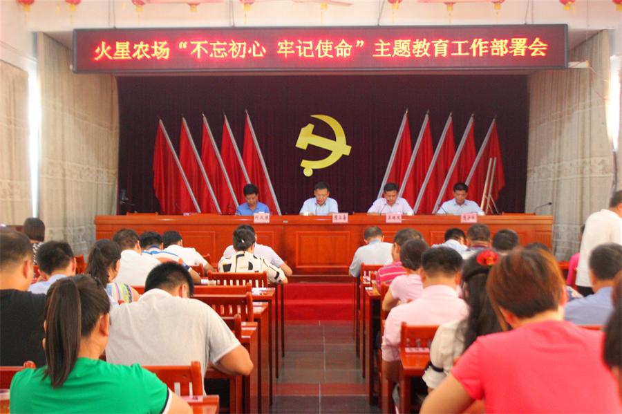 火星農(nóng)場召開“不忘初心,牢記使命”主題教育工作部署會 7月1日,火星農(nóng)場召開“不忘初心,牢記使命”主題教育工作部署會。農(nóng)場在家的領導陳江海,蘇錫茂,陳汝林,劉漢模出席會議,機關全體干部,直屬單位和基層單位黨政主要負責人等100多人參加。會議由黨委副書記、場長蘇錫茂主持。