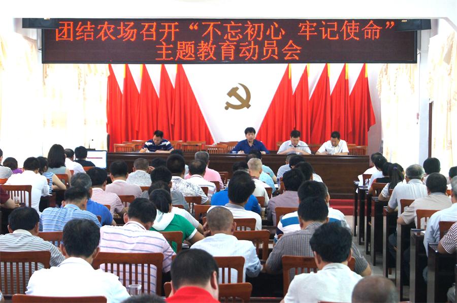 團結(jié)農(nóng)場黨委組織召開“不忘初心?牢記使命”主題教育動員會 6月5日,團結(jié)農(nóng)場黨委組織召開“不忘初心·牢記使命”主題教育動員會。機關(guān)、直屬單位、管理區(qū)及生產(chǎn)隊干部130多人參加,副場長黃慶鋒主持會議。