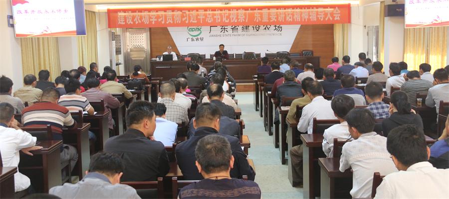 建設(shè)農(nóng)場召開學(xué)習(xí)習(xí)近平總書記視察廣東重要講話精神輔導(dǎo)大會 11月23日,建設(shè)農(nóng)場召開學(xué)習(xí)習(xí)近平總書記視察廣東重要講話精神輔導(dǎo)大會,邀請了化州市委宣講團(tuán)成員、黨校辦公室主任、講師李萬甘作專題輔導(dǎo)。全場機(jī)關(guān)干部、基層單位管理干部、各黨支部書記共102人參加了會議。