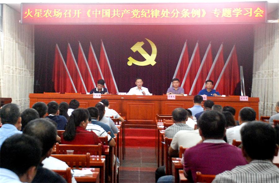 火星農(nóng)場(chǎng)召開《中國(guó)共產(chǎn)黨紀(jì)律處分條例》專題學(xué)習(xí)會(huì) 近日,火星農(nóng)場(chǎng)舉辦《中國(guó)共產(chǎn)黨紀(jì)律處分條例》專題學(xué)習(xí)會(huì),來自全場(chǎng)共90余名黨員干部參加學(xué)習(xí)。會(huì)議由黨委書記陳江海主持。